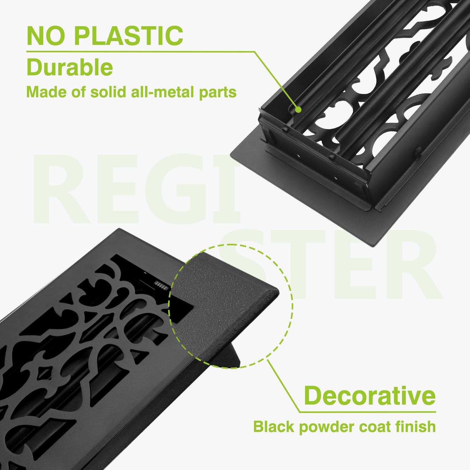 Naiture Stainless Steel Floor Register, Heavy Duty Rust-Resistant Air Vent Cover, Metal Damper or Lever, Traditional Style Grille Floor Vent