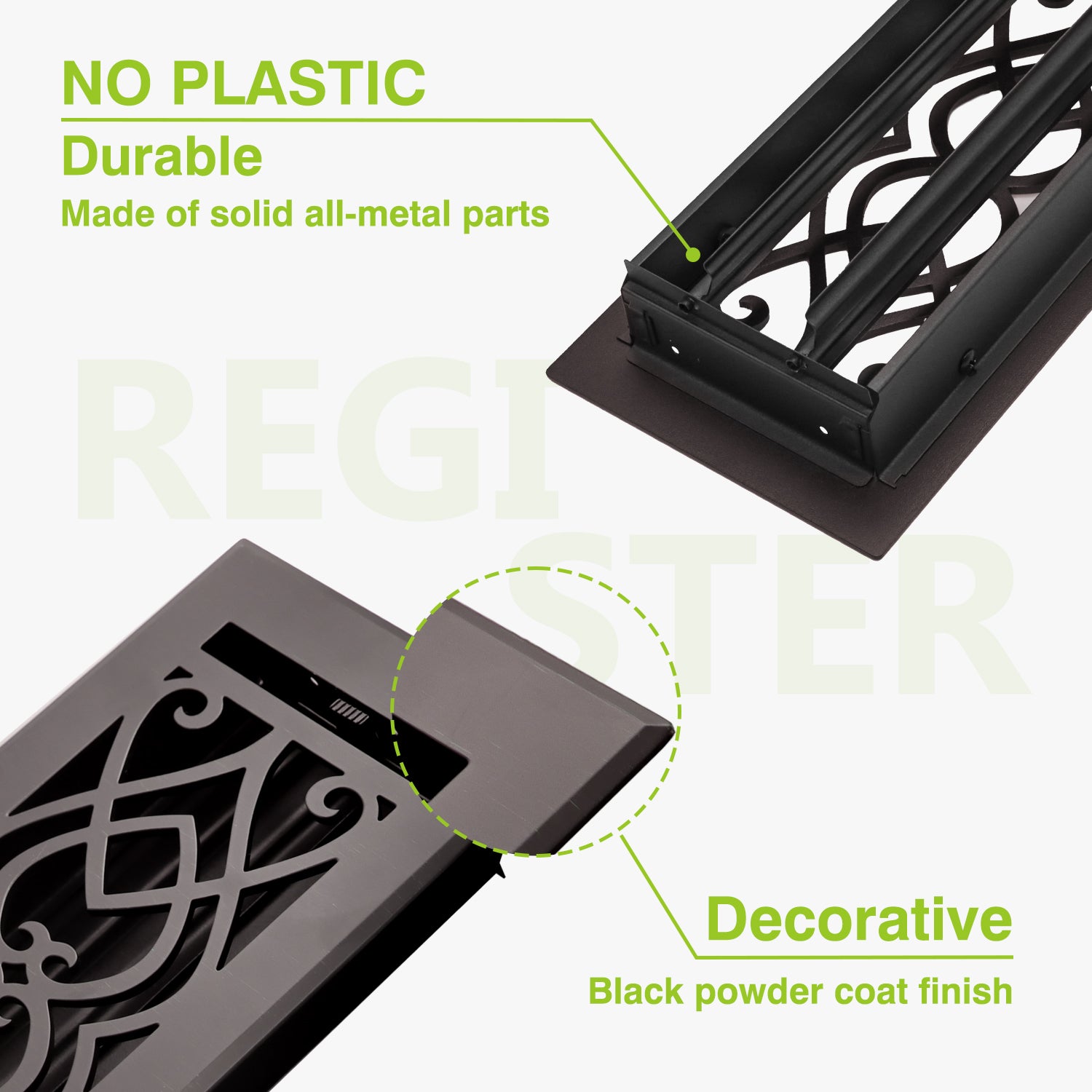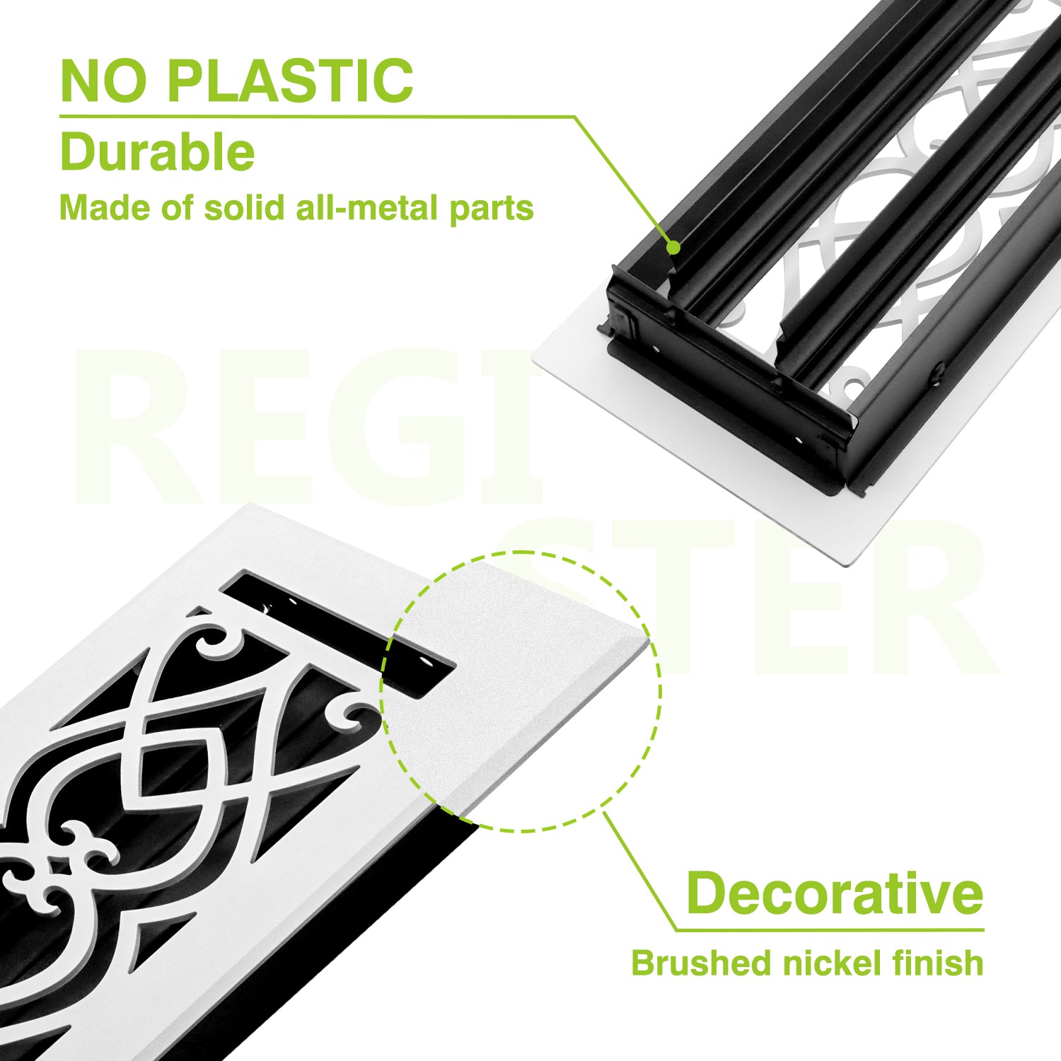 Naiture Stainless Steel Floor Register, Heavy Duty Rust-Resistant Floor Vent Cover, Metal Damper or Lever, Victorian Style Grille Floor Vent