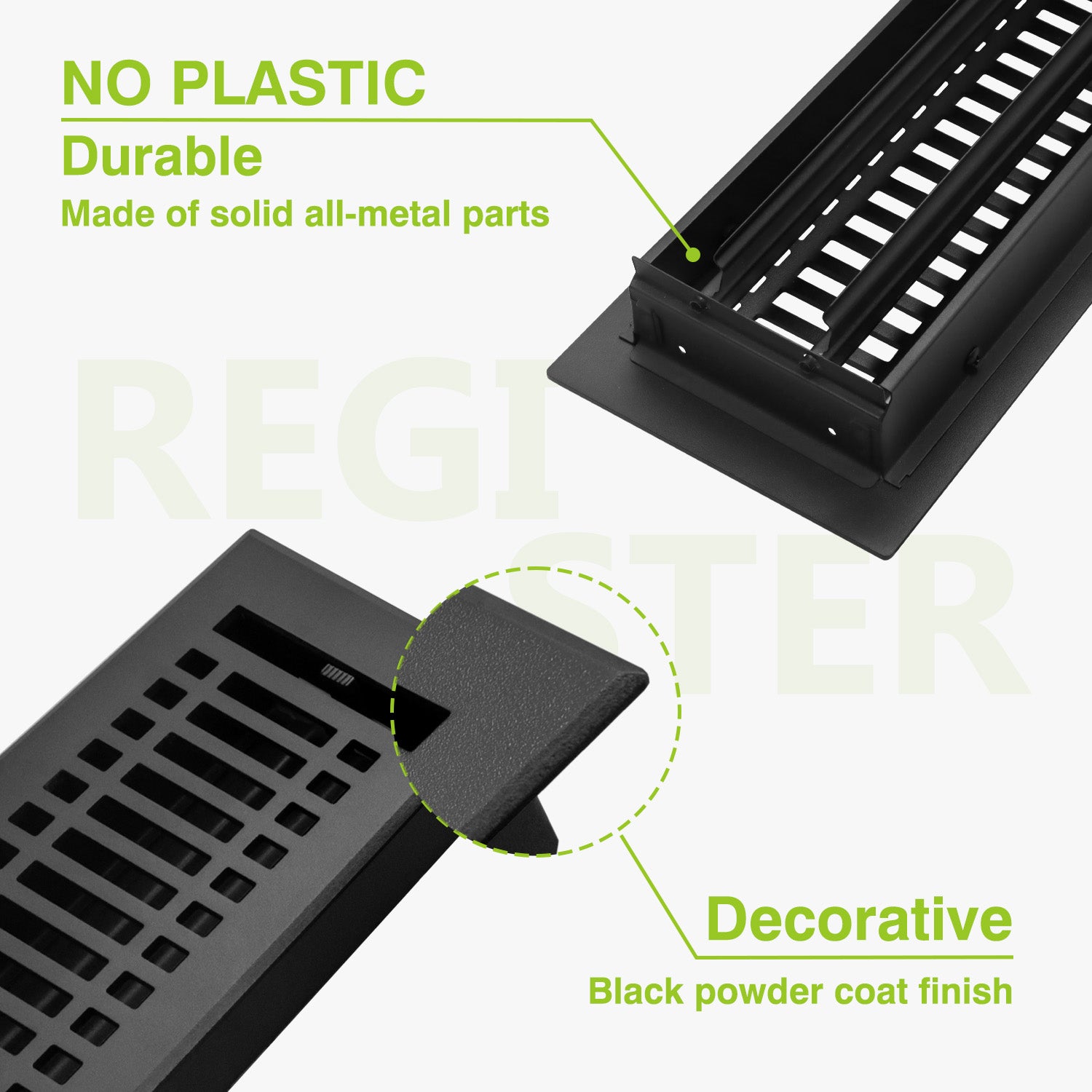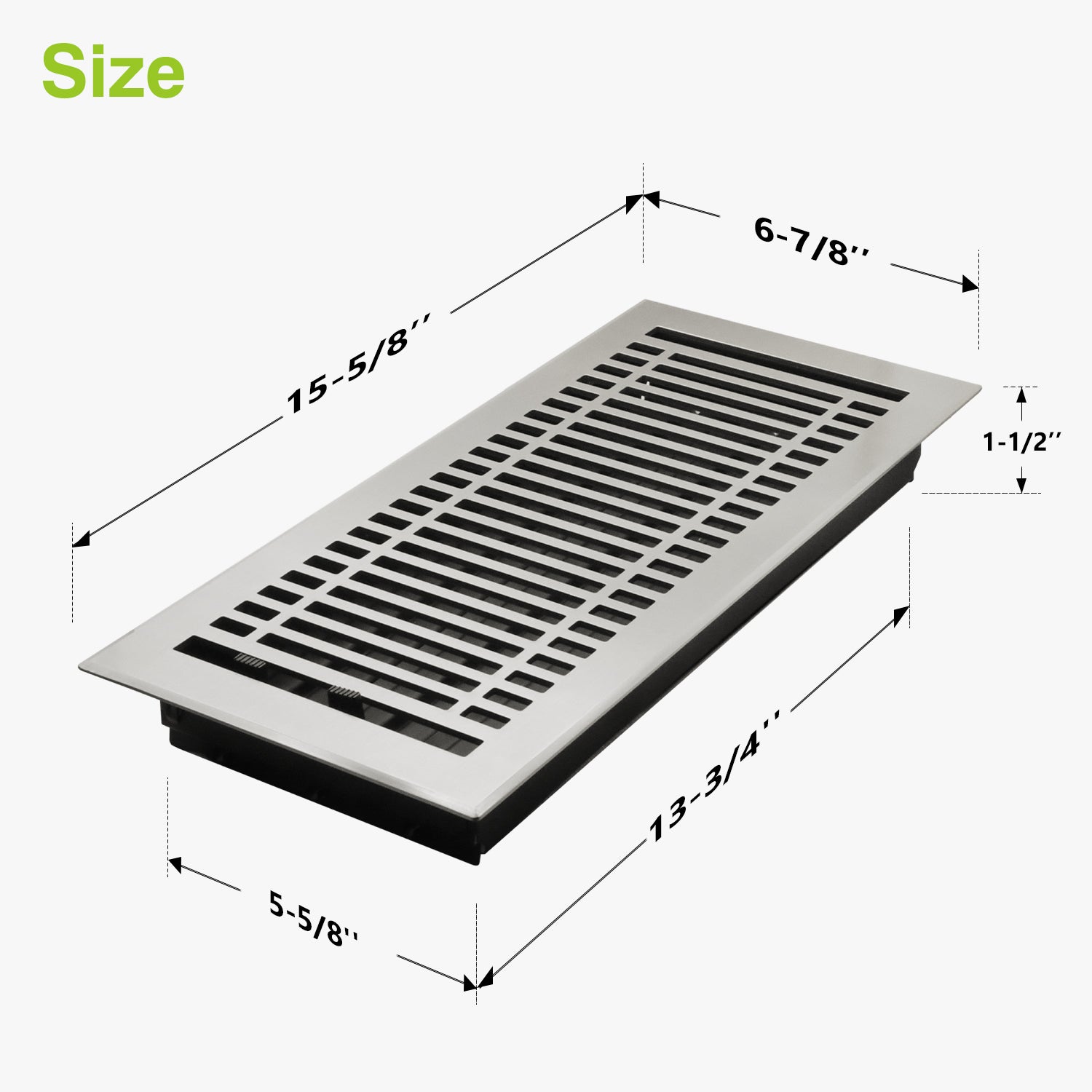 Naiture Stainless Steel Floor Register, Heavy Duty Rust-Resistant Vent Cover, Metal Damper or Lever, Contemporary Style Floor Air Vent