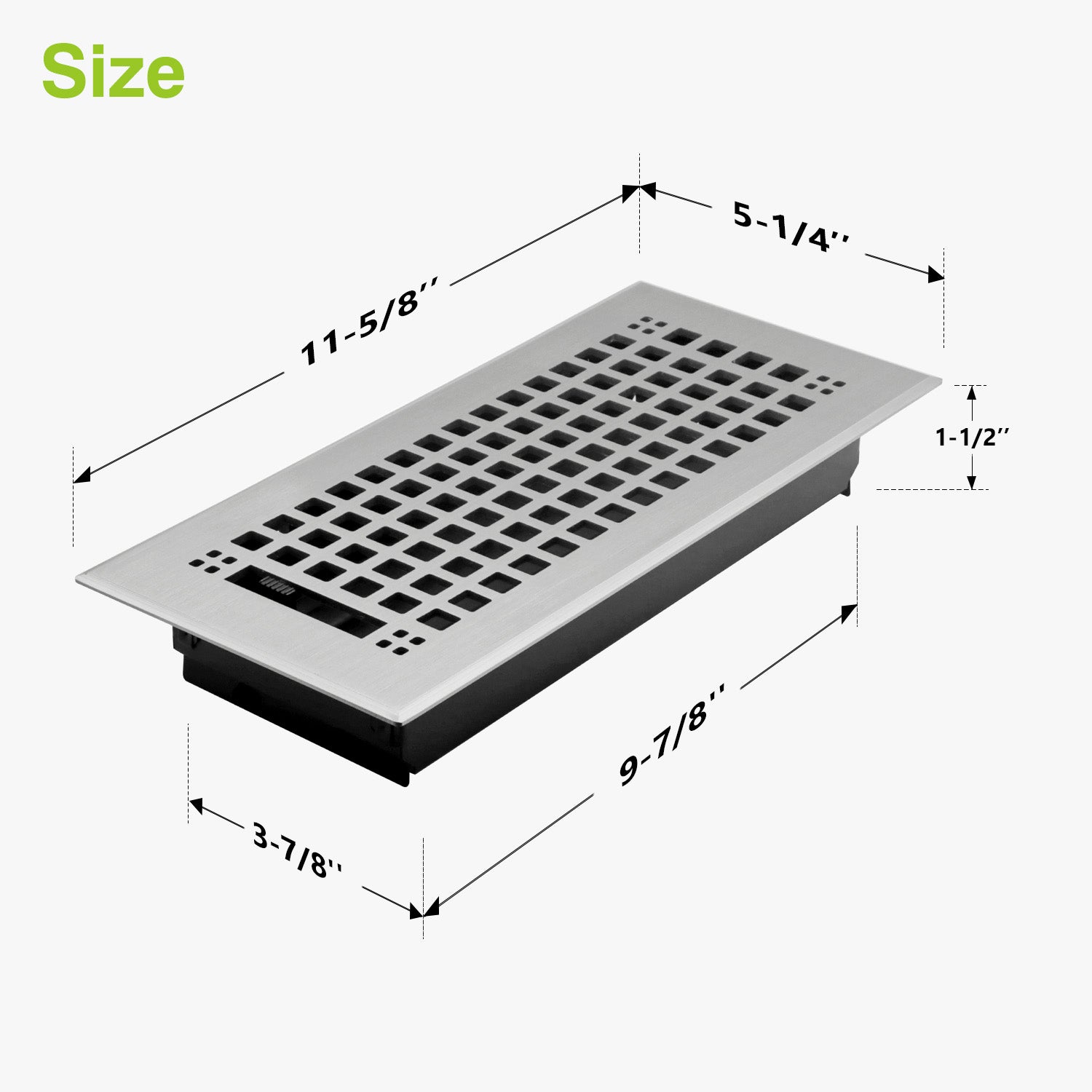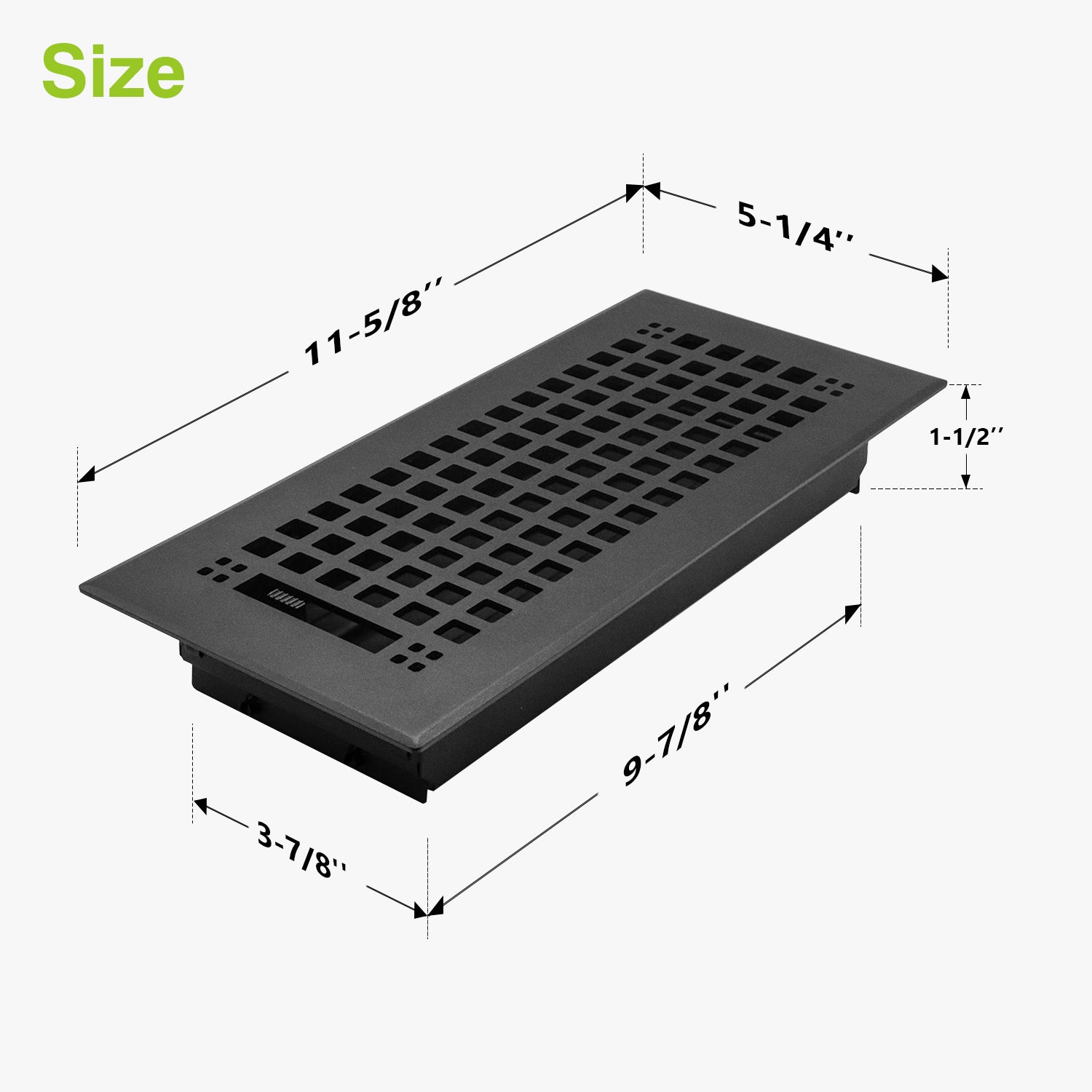 - Duct opening size: 4" X 10" (3-7/8" X 9-7/8"). Overall size: 5-1/4" X 11-5/8".
