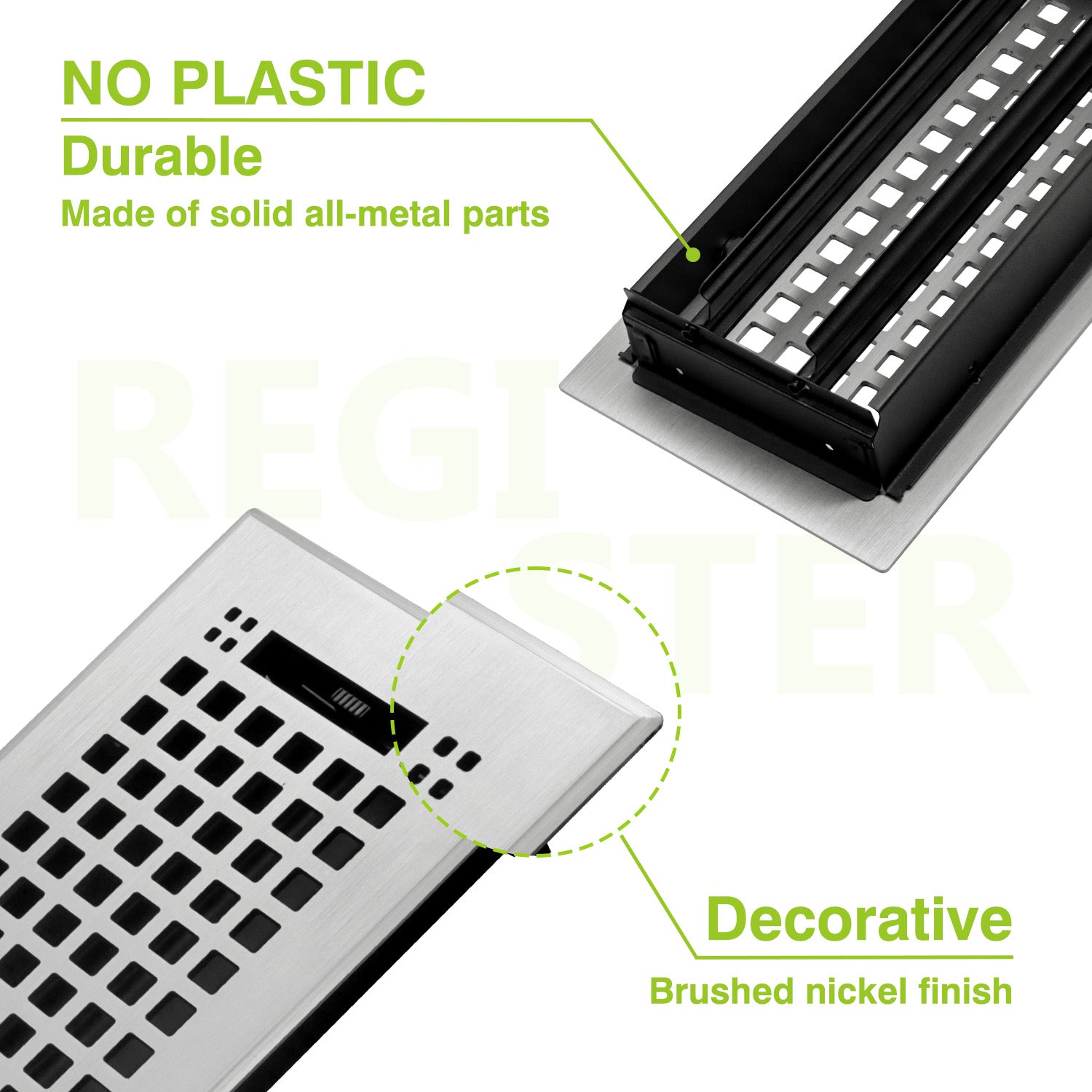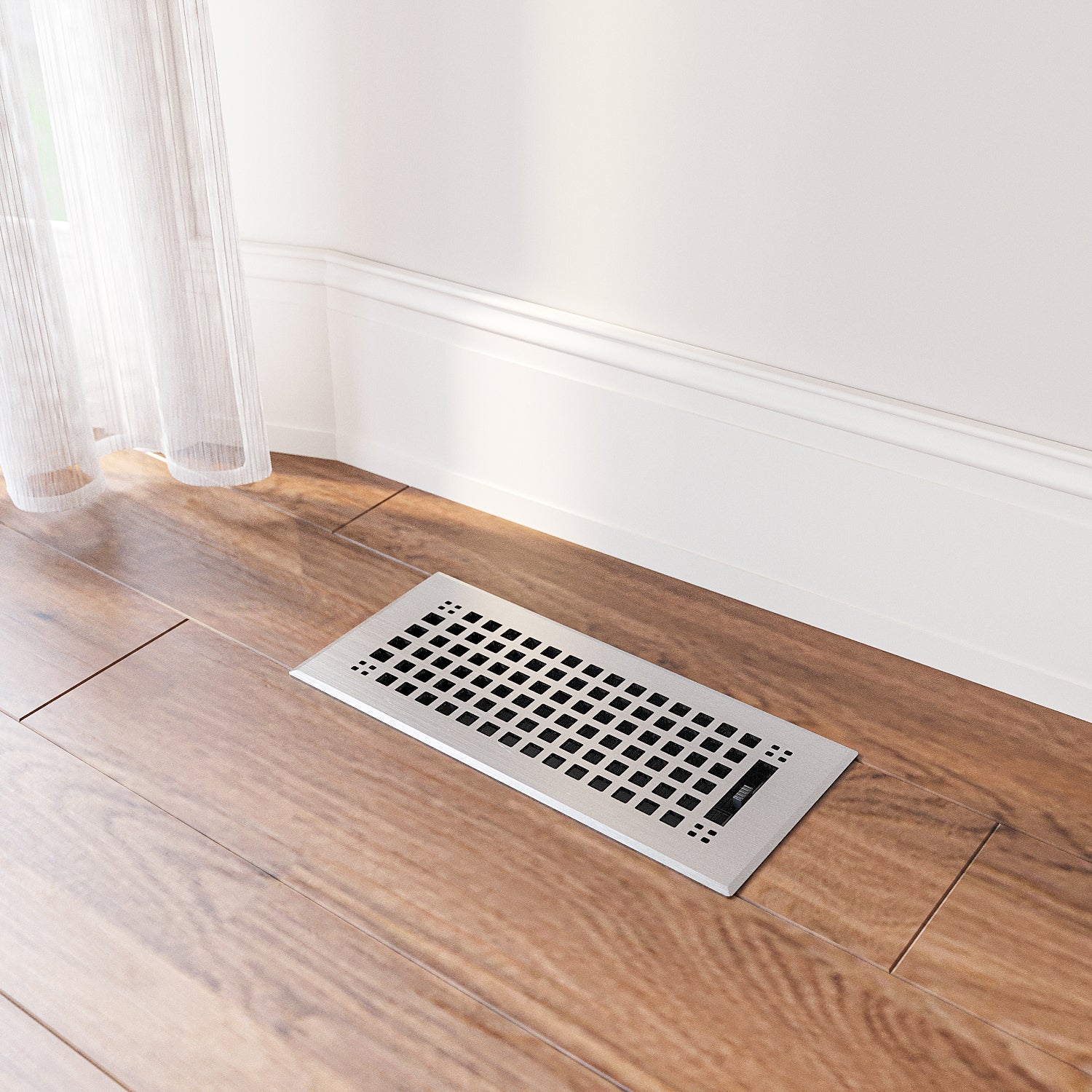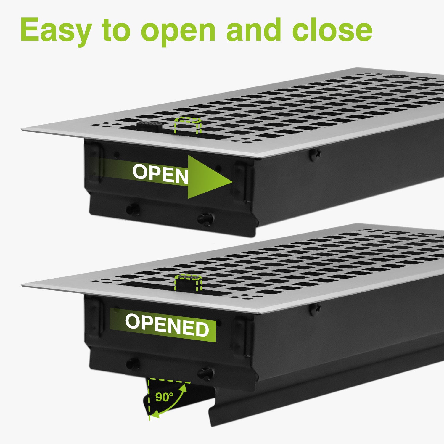Naiture Louvered Floor Register, Mission Style Stainless Steel with Damper or Lever