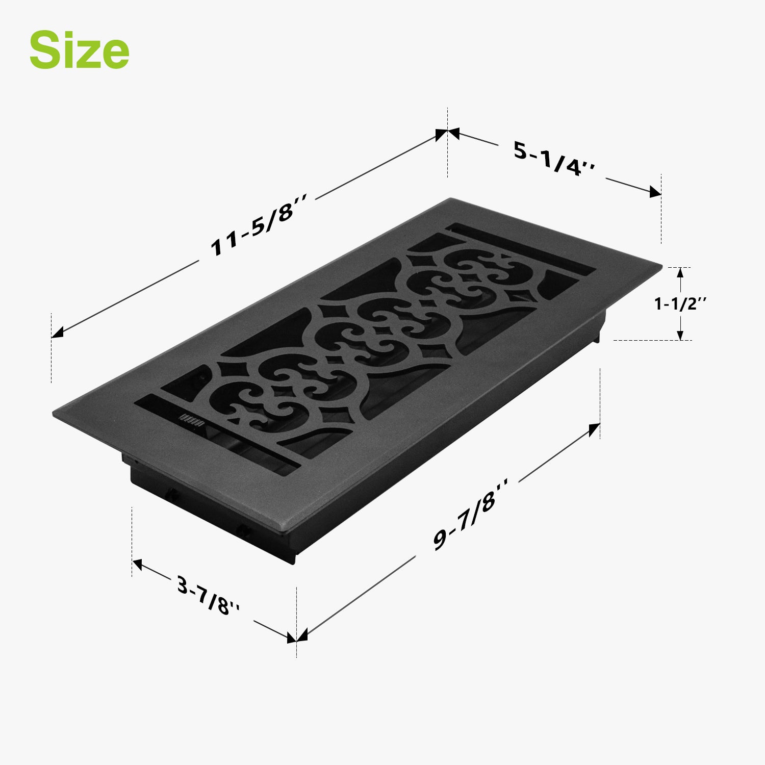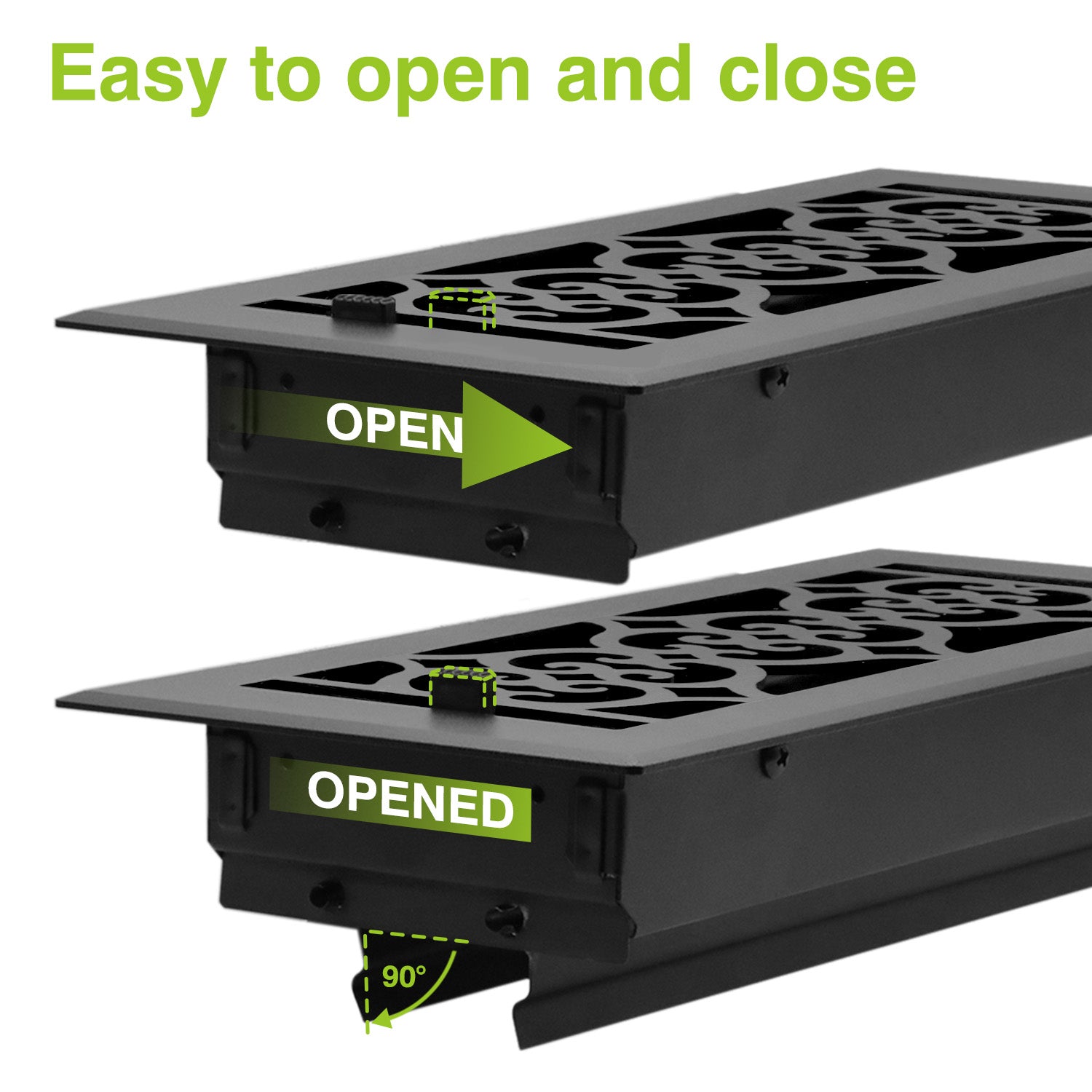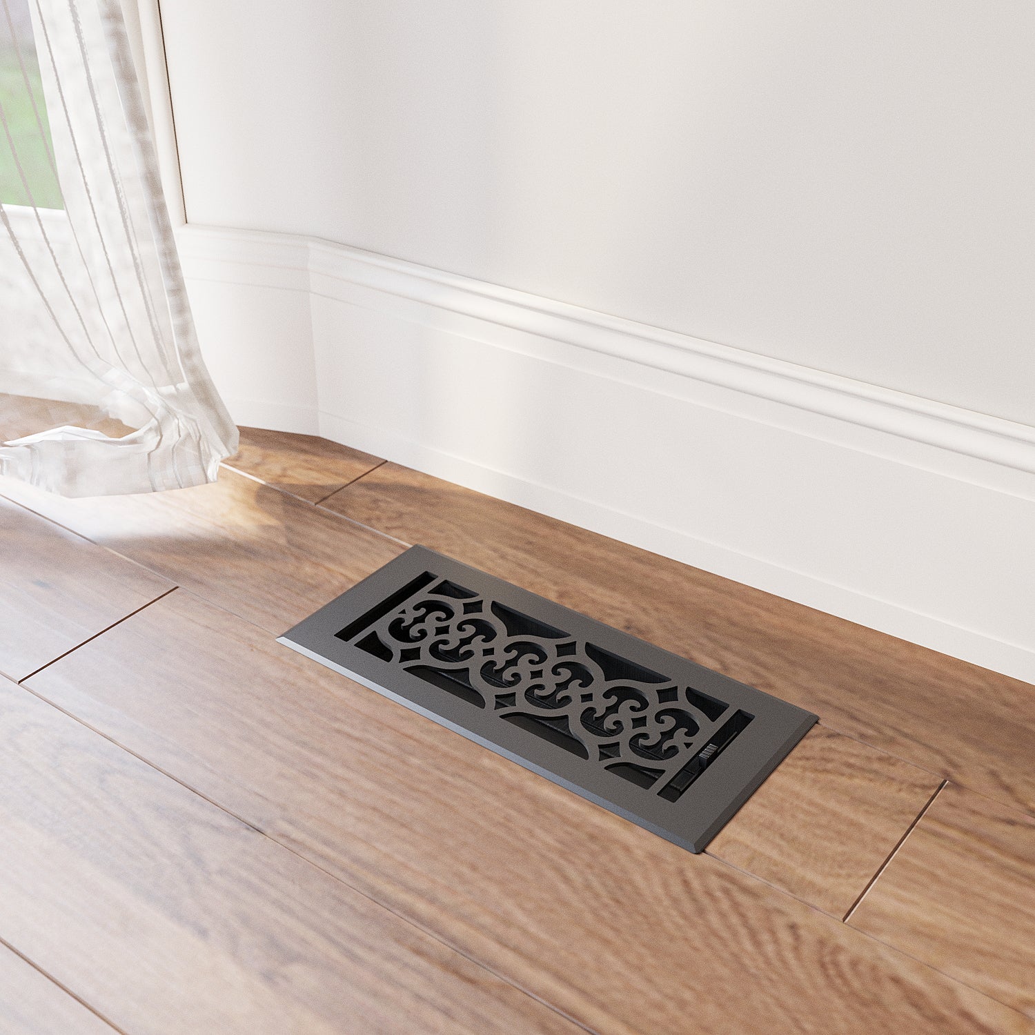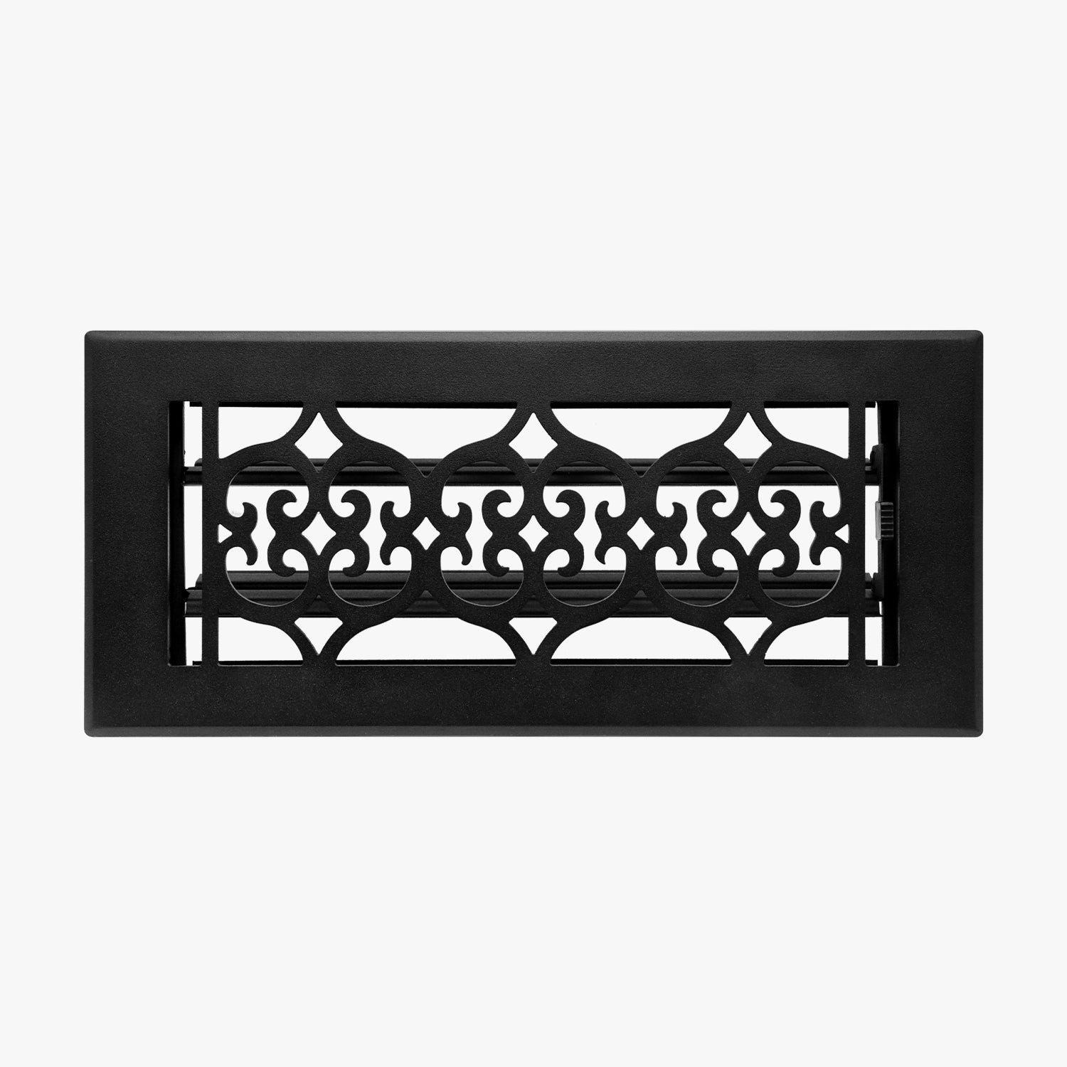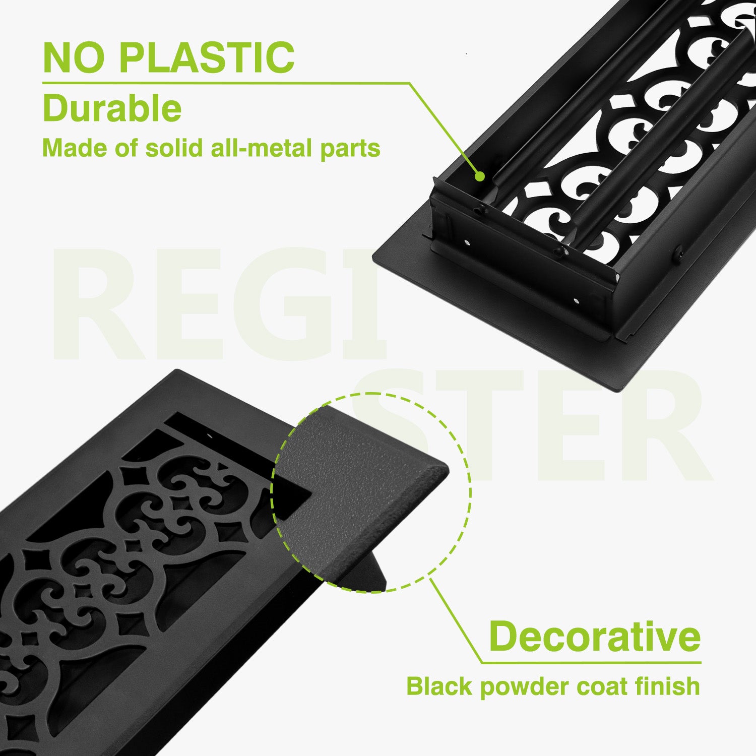 Naiture Stainless Steel Floor Register, Heavy Duty Rust-Resistant Floor Vent Cover, Metal Damper or Lever, Old Victorian Style Grate Floor Vent, Duct Size 4" X 10", Black Finish
