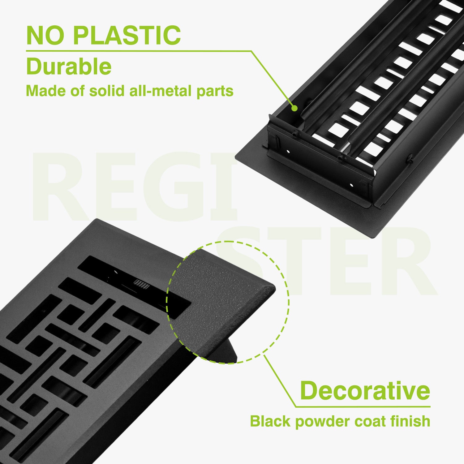 Naiture Stainless Steel Floor Register, Heavy Duty Rust-Resistant Floor Vent Cover, Metal Damper or Lever, Wicker Style Grille Floor Air Vent, Duct Size 4" X 10", Black Finish