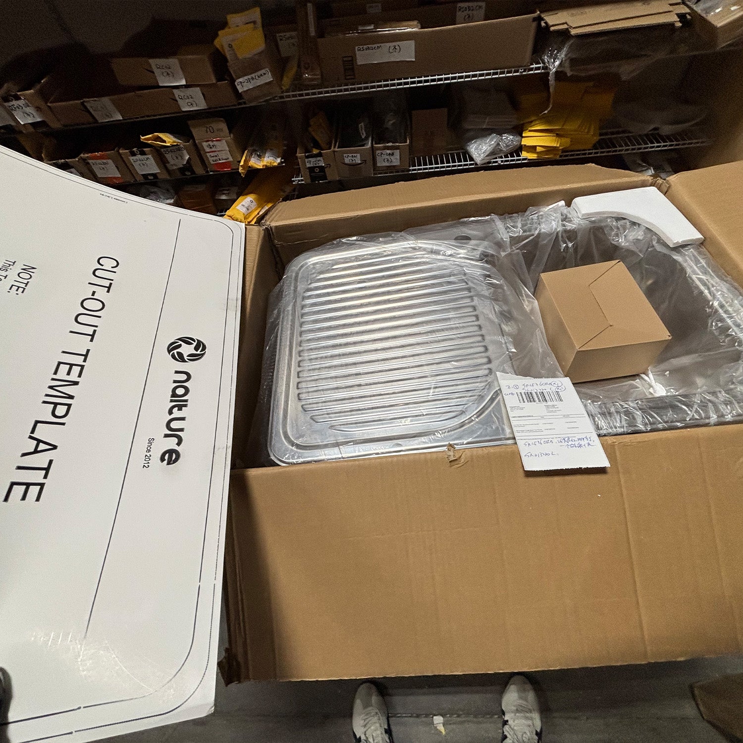 - Half drainboard and half basin, including mounting clips.