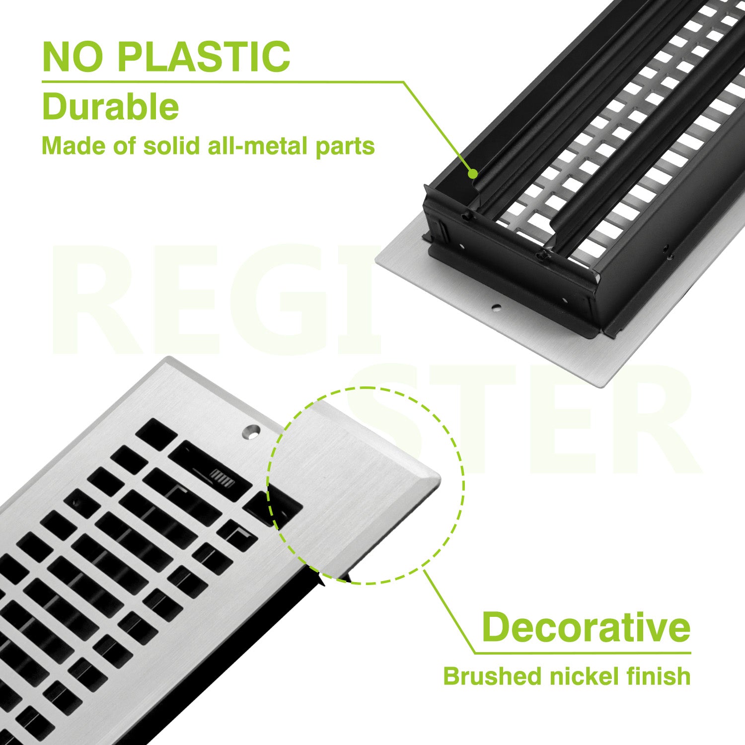 Naiture Stainless Steel Wall Register, Heavy Duty Rust-Resistant Air Vent Cover, Metal Damper or Lever, Contemporary Style Grate Wall Vent