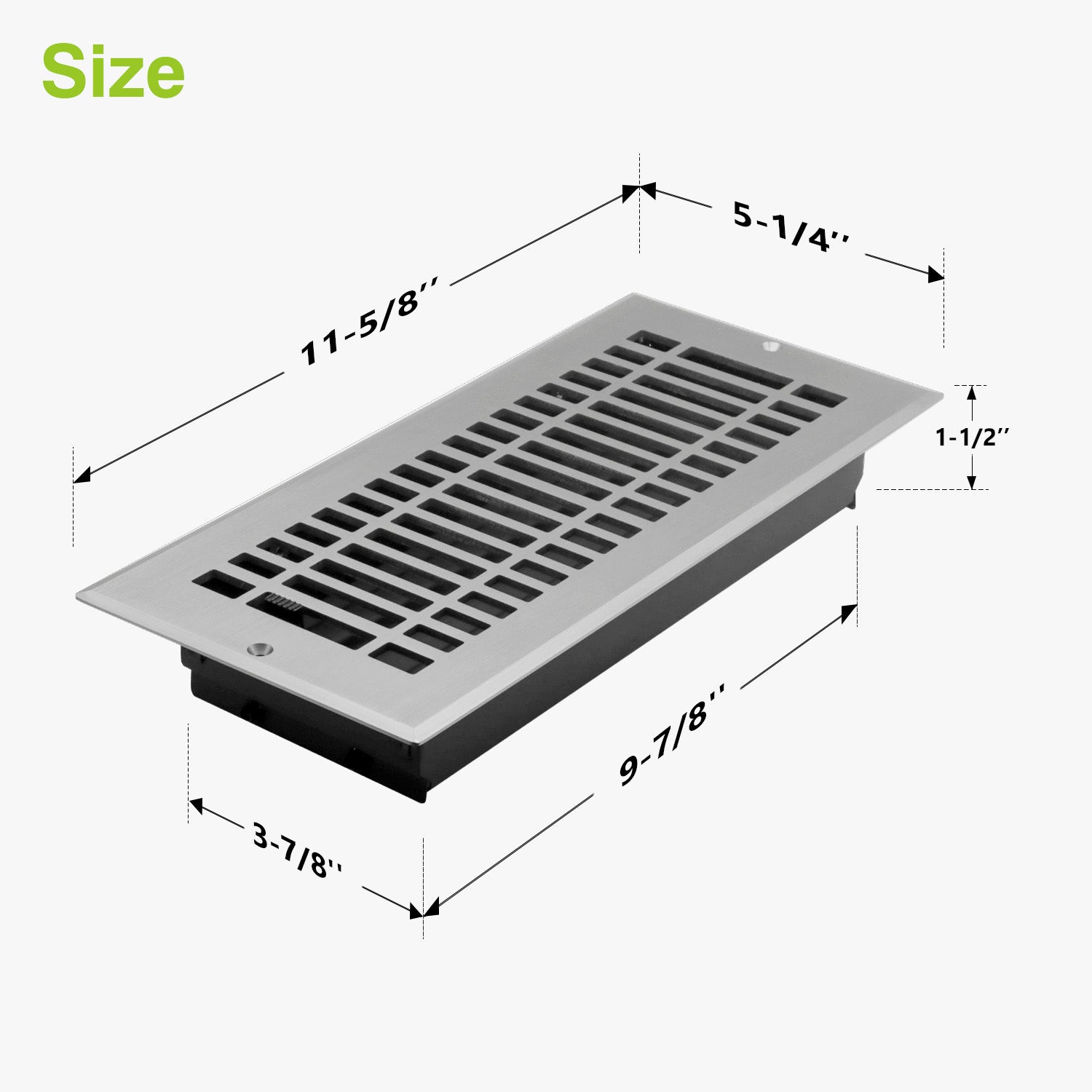 - Duct opening size: 4" X 10" (3-7/8" X 9-7/8"). Overall size: 5-1/4" X 11-5/8". The exact duct opening size is a little smaller than the size of air duct opening, which makes it easier to fit in.