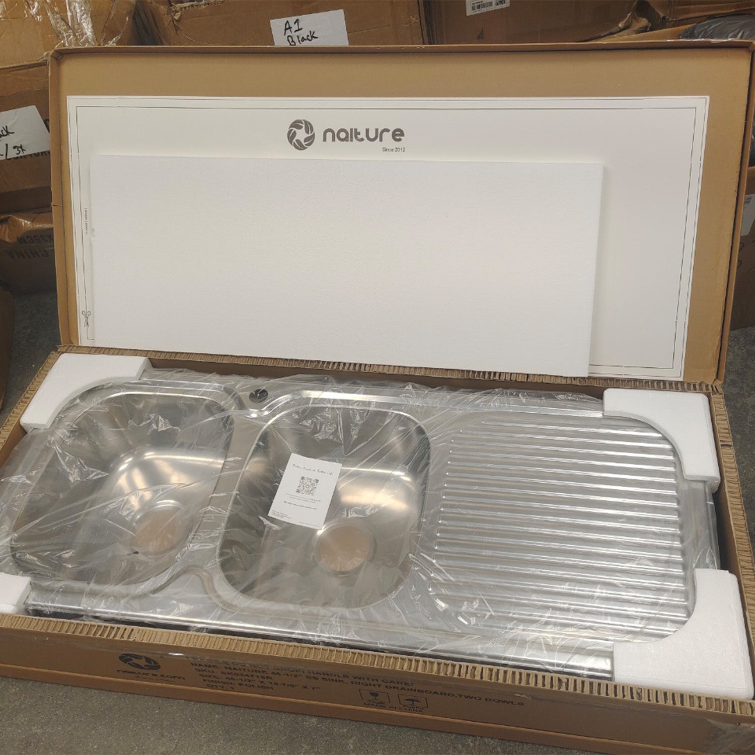 Naiture Double Bowl Stainless Steel Kitchen Sink, Rectangular Drop-In Top Mount Sink, 46-1/2" X 18-7/8" with Right Drainboard and Single Faucet Hole(USED, 90% New)