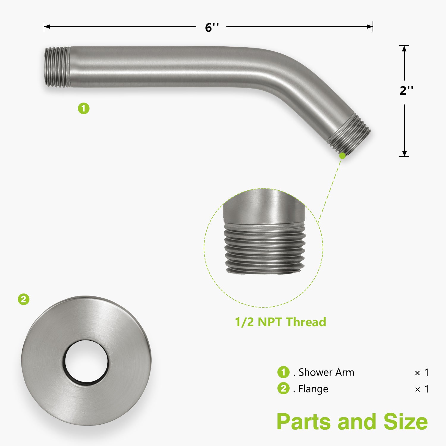 Bras de douche standard en laiton avec bride Nature