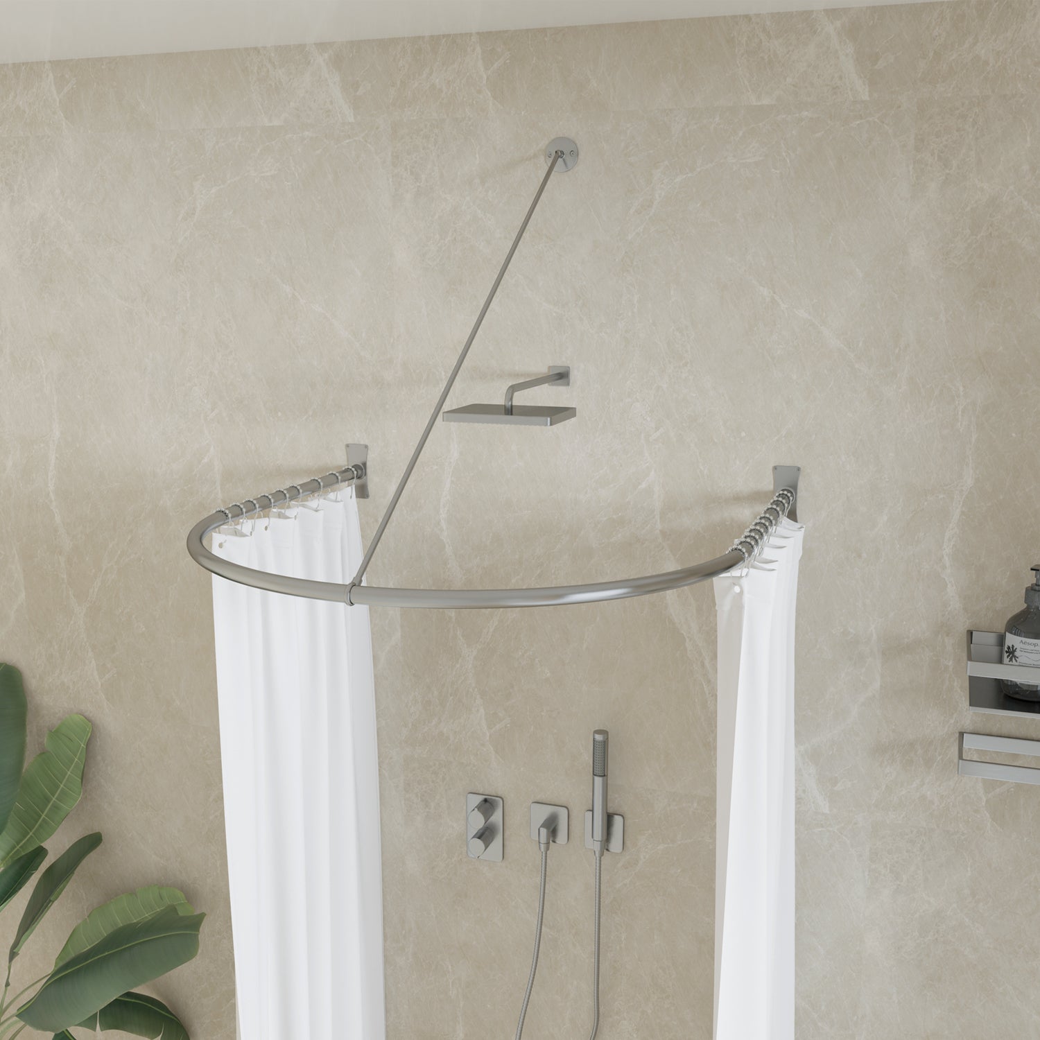 Naiture Half-Oval 36" L X 36" W Stainless Steel Shower Curtain Rod with Ceiling Support