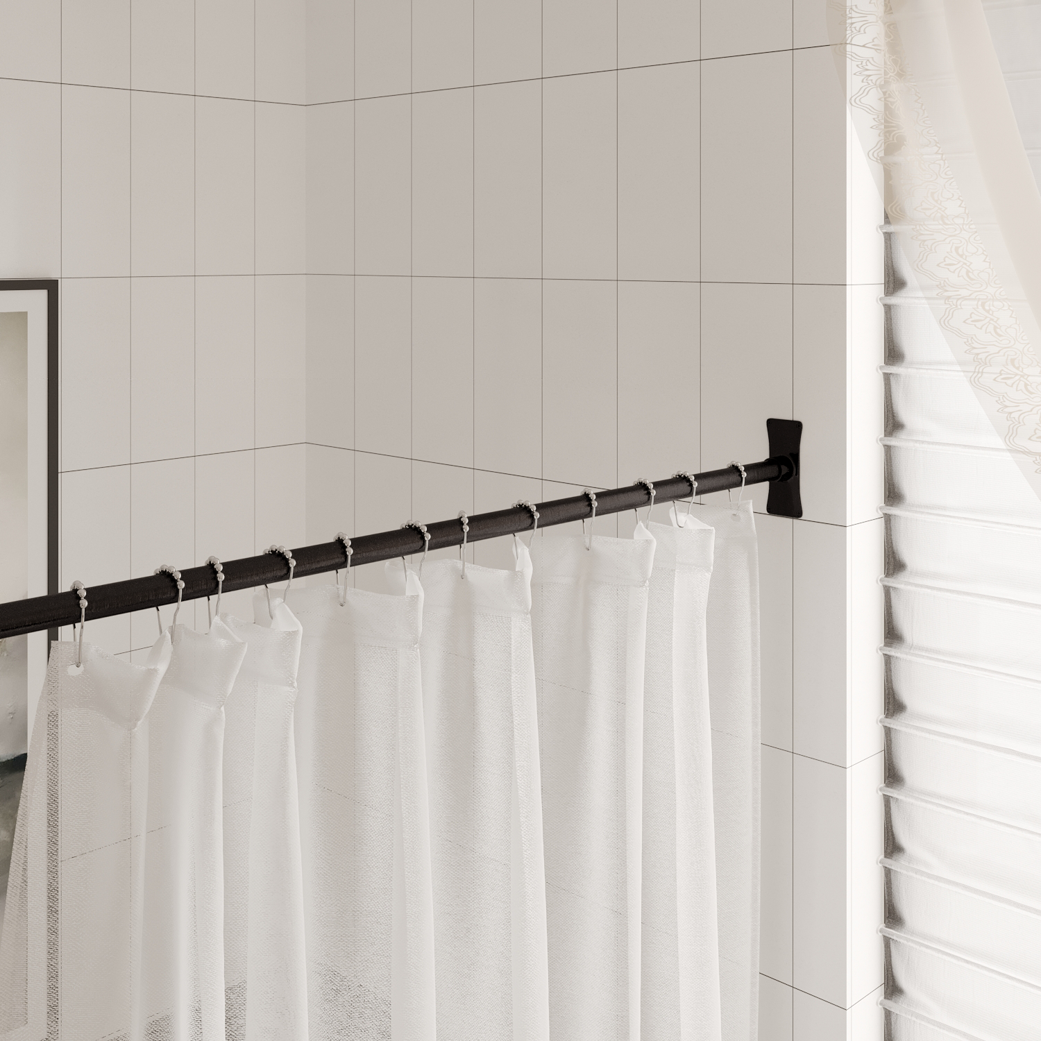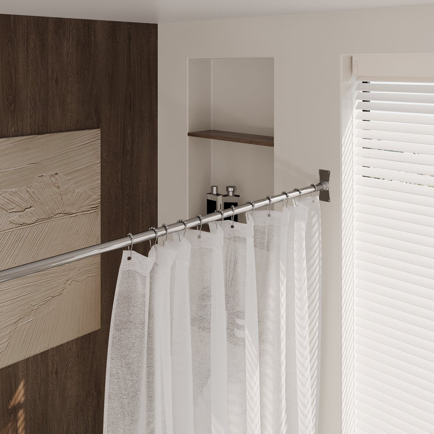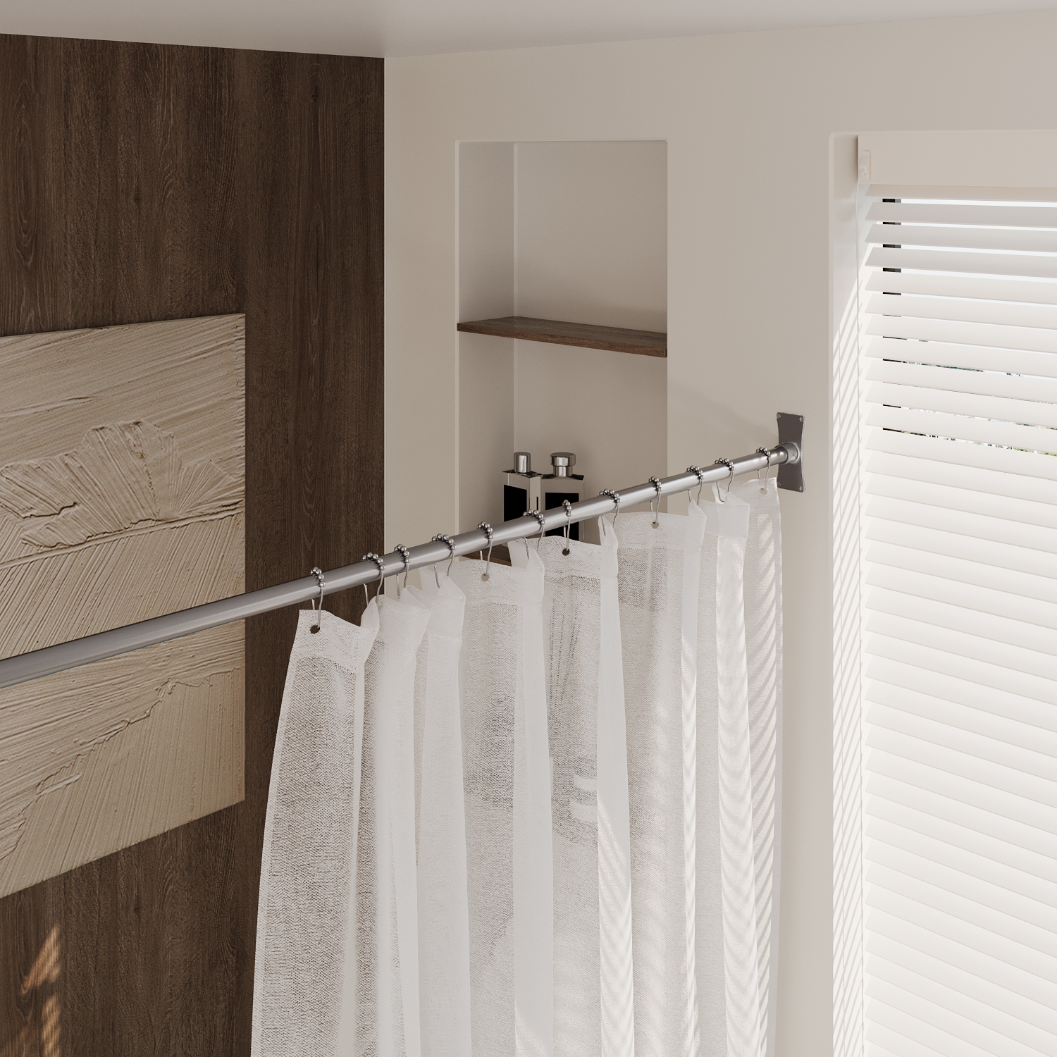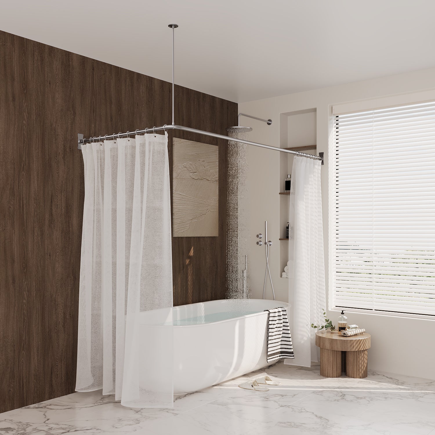 Naiture Stainless Steel Corner L Shaped Shower Curtain Rod with Ceiling Support