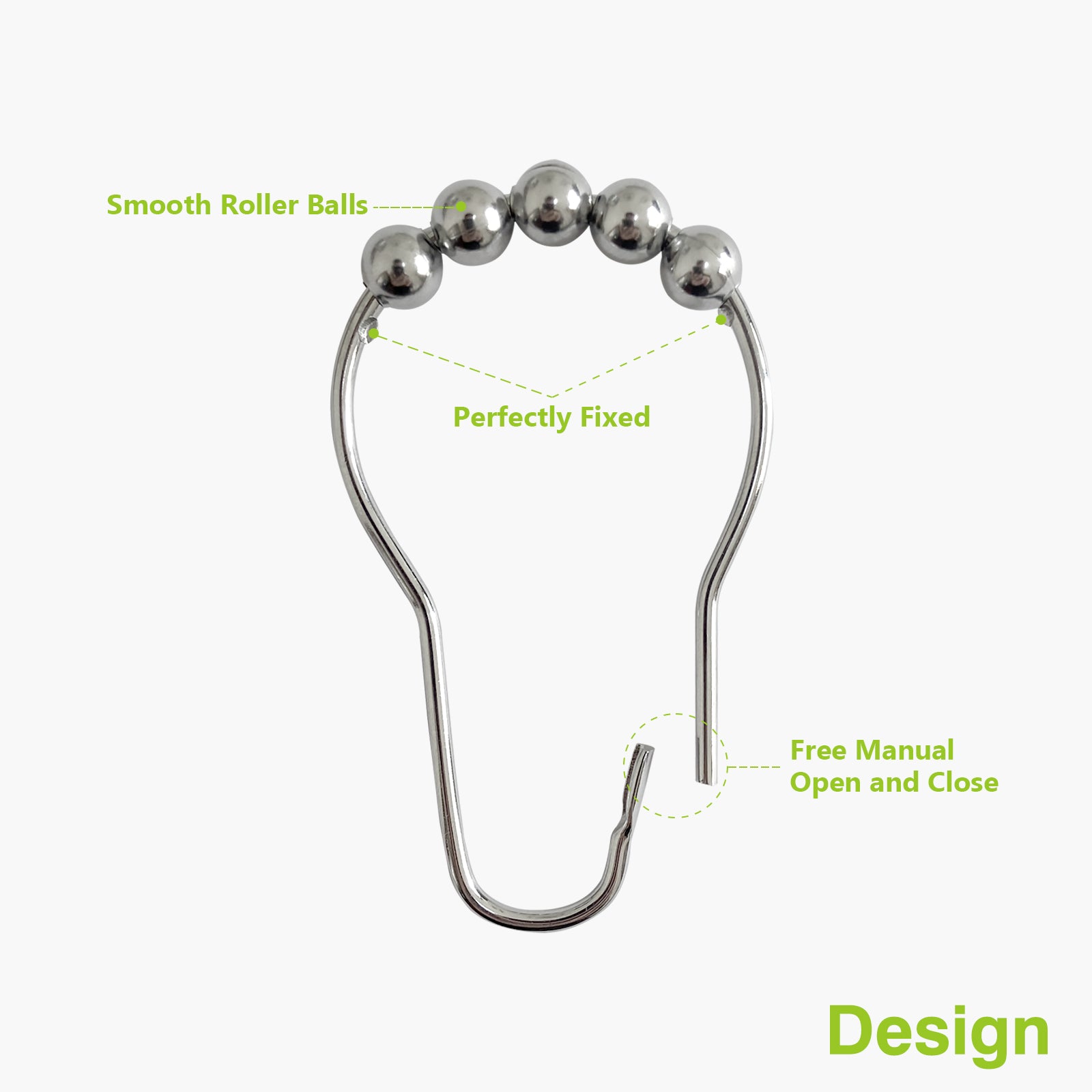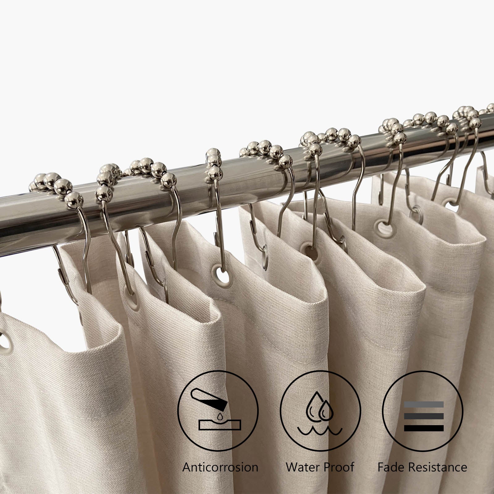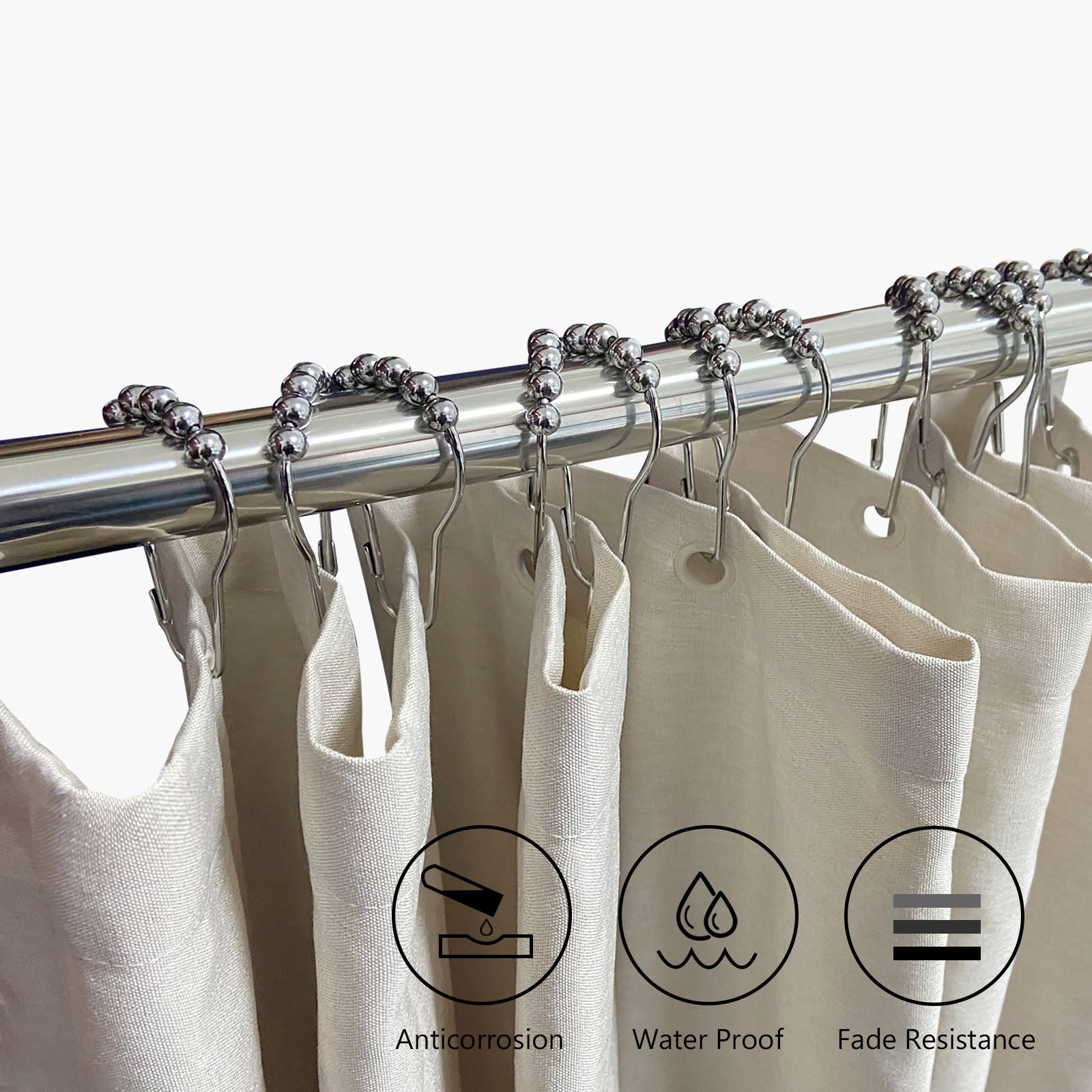 Naiture Stainless Steel Shower Curtain Hooks Rings for Bathroom Shower Rod, Set of 12, Never Rust